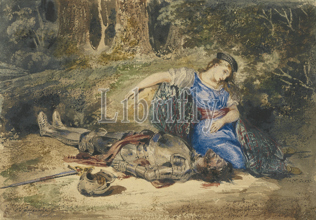Death, Lara, Eugène Delacroix, French, 1798, 1863, 1824, Watercolor, bodycolor, underdrawing, graphite