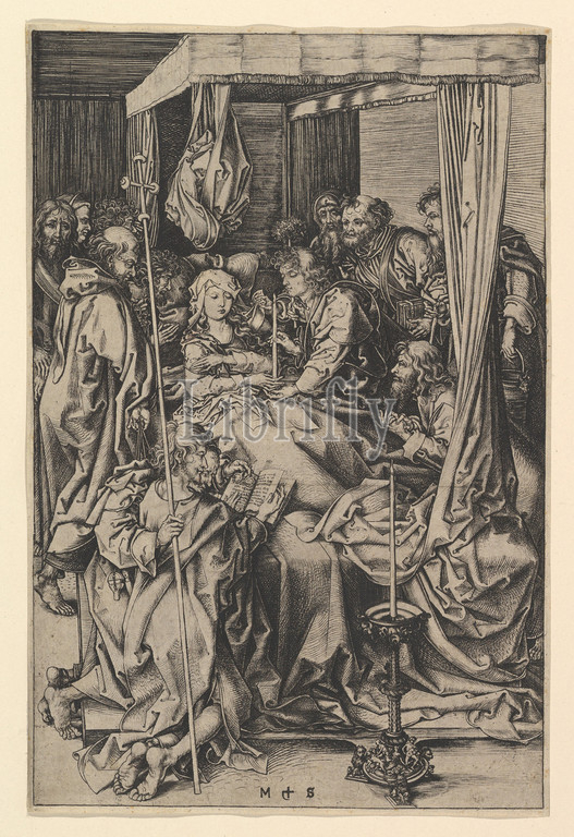 The Death of the Virgin, 15th century, Engraving; second state, Prints, Martin Schongauer (German, Colmar ca. 1435/50–1491 Breisach)