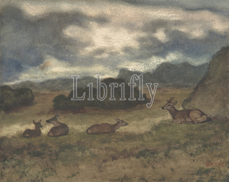 Deer, Landscape, 1810–75, Watercolor, wove paper, Sheet, 7 1/2 x 9 7/16, 19 23.9cm, Drawings, Antoine-Louis Barye, French, Paris, 1796–1875