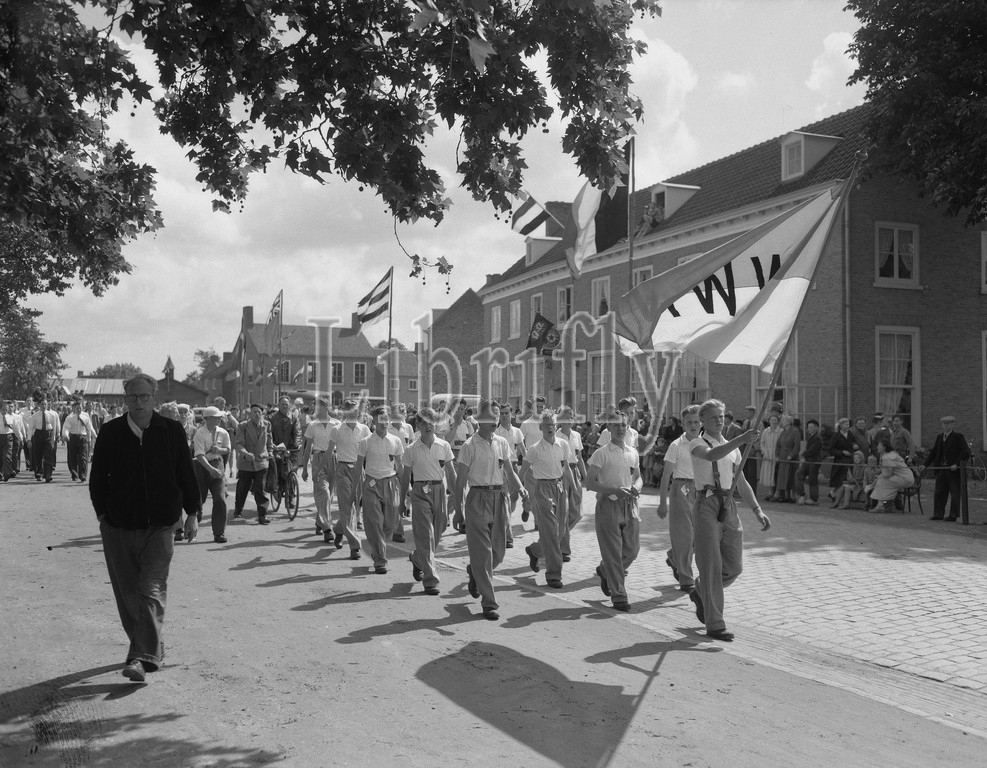 Delft, relocation statue Hugo de Groot, July 26 1954, Statues, relocations, The Netherlands, 20th century press agency photo, news to remember, documentary, historic photography 1945-1990, visual stories, human history of the Twentieth Century, capturing moments in time