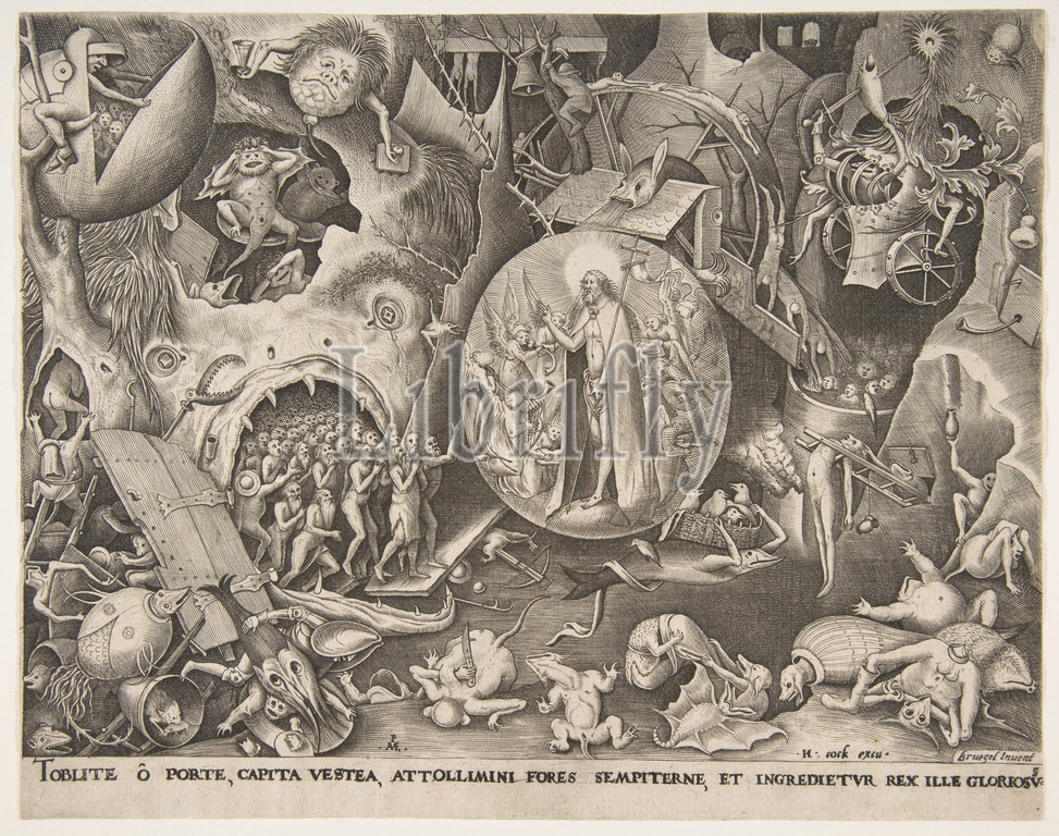 Descent, Christ, Limbo, ca, 1561, Engraving, first state, two, sheet, 9 1/16 x 11 7/16, 23 29 cm, Prints, After Pieter Bruegel the Elder, Netherlandish, Breda, ca., 1525–1569, Brussels, Pieter van der Heyden