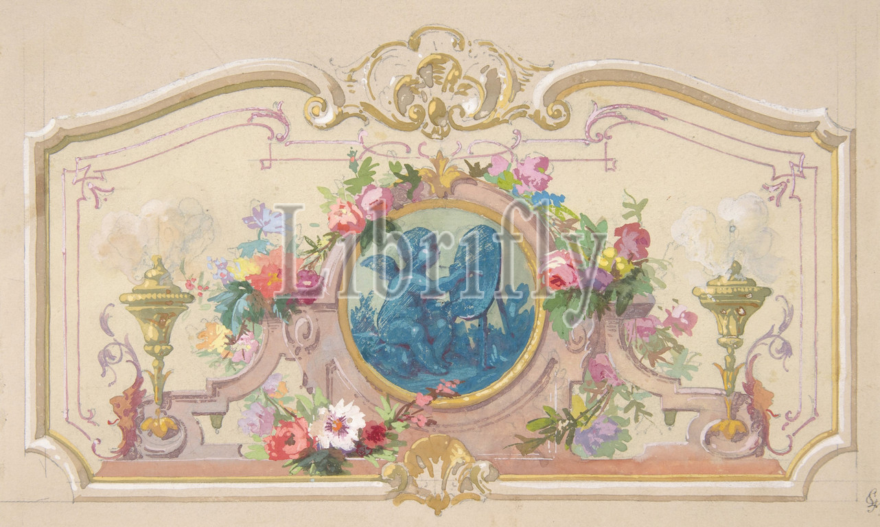 Design fo the Allegory of the Arts, second half 19th century, Graphite, gouache, and watercolor, Overall: 10 7/16 x 14 3/4 in. (26.5 x 37.4 cm), Drawings, Jules-Edmond-Charles Lachaise (French, died 1897), Eugène-Pierre Gourdet (French, born Paris, 1820)