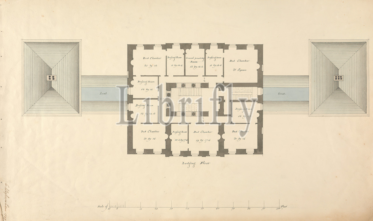 Design, Ardgowan House, Scotland, Chamber Floor Plan, Claud Cleghorn, active 1797–1800, 1797, Watercolor, gray wash, pen, black, brown ink, smooth, moderately thick, beige wove paper bar scale, 1, 12 inch, 1 foot, Sheet, architectural subject, design, floor plan, house, Europe, Scotland, United Kingdom