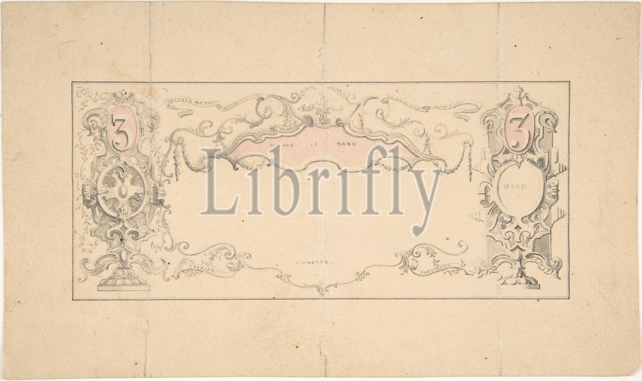 Design, Banknote, Certificate, 1830–1900, Ink, graphite, watercolor, Robert William Hume, British, London, 1816–1904, Long Island City