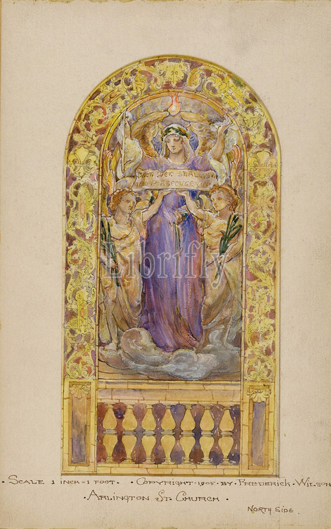Design, beatitude window, presentation portfolio, Arlington Street Church, Boston, Massachusetts, ca, 1905, New York, United States, American, Watercolor, gouache, brown ink, graphite, artists board, mat, set, wood pulp paper, Overall, closed, 10 1/2 x 5 1/2, 26.7 14 cm, Drawings, Louis Comfort Tiffany, 1848–1933, highly, finished, presentation, drawing, six figural, windows, depicting, beatitudes, balcony, Street, Church, Wilson originally, created, ten, window, designs, representing, blessings, Christ, Sermon, Mount, Matthew 5, 1–12, six, executed, glass