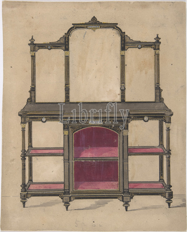 Design, Cabinet, Shelves, Mirrors, 19th century, Ink, watercolor, sheet, 8 11/16 x 6 15/16, 22 17.7 cm, Anonymous, British