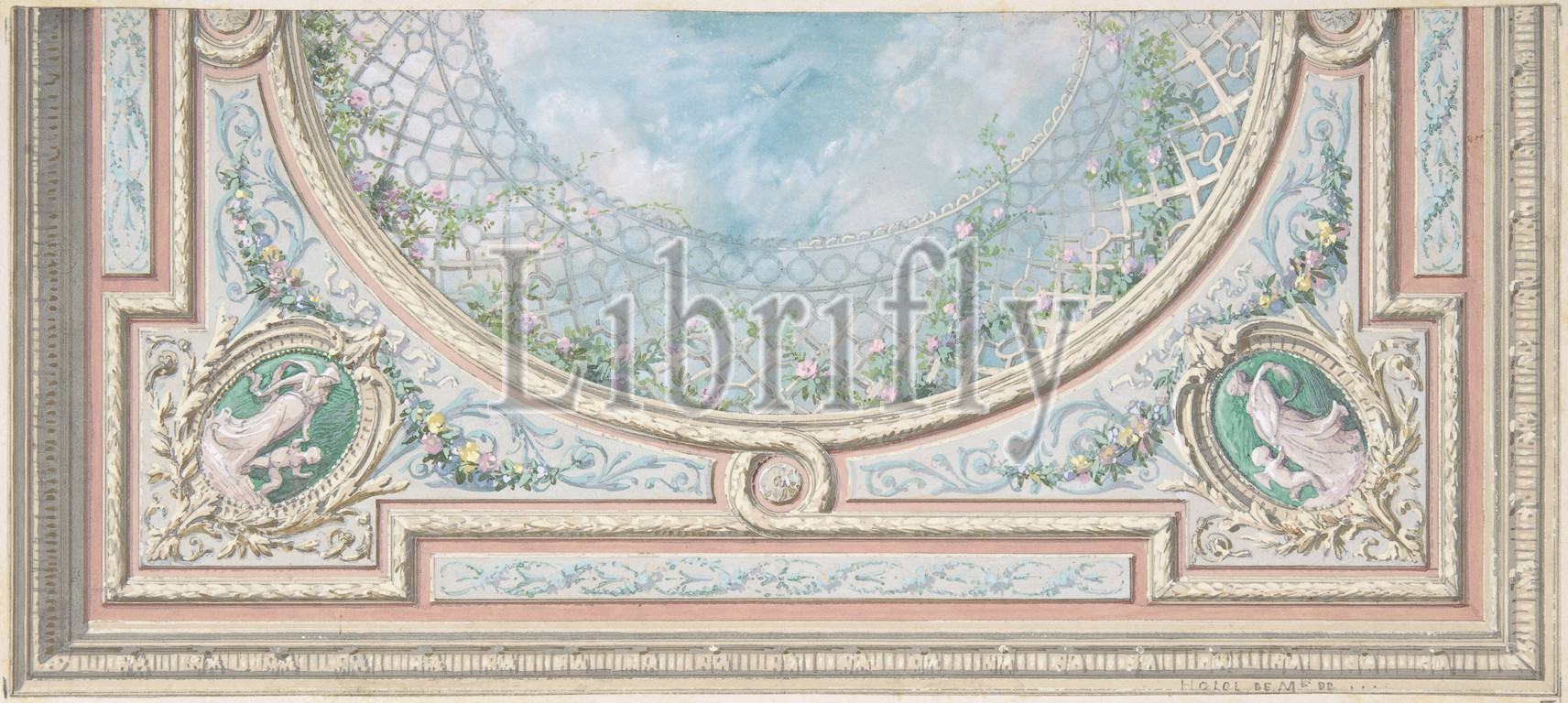 Design, Ceiling, Bedroom, Mme de Marconnoy, second half 19th century, Watercolor, gouache, 5 1/4 x 11 3/4, 13.3 29.8 cm, Drawings, Jules-Edmond-Charles Lachaise, French, died, 1897, Eugène-Pierre Gourdet, born Paris, 1820