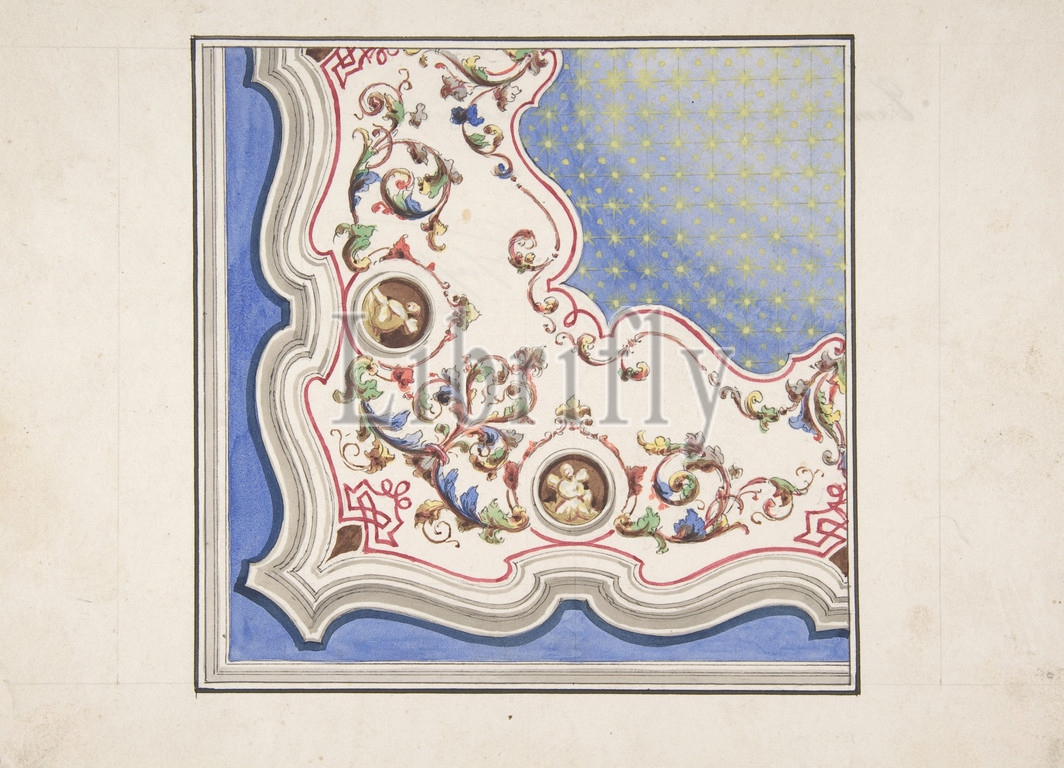Design, Ceiling Decoration, 1850–70, Watercolor, 6-1/8 x 6-1/8, Drawings, Anonymous, Italian, 19th century