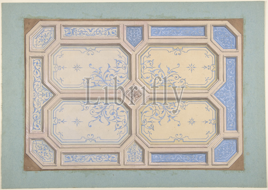 Design, Ceiling, Hôtel Hope, 1867, Pen, black ink, gouache, watercolor, 8 9/16 x 12 5/16, 21.8 31.3 cm, Drawings, Jules-Edmond-Charles Lachaise, French, died, 1897, Eugène-Pierre Gourdet, born Paris, 1820