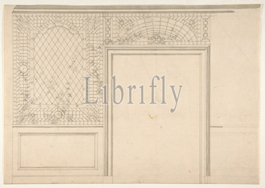 Design, ceiling, lattice work, flowering vines, second half 19th century, Graphite, pen, ink, watercolor, laid paper, mounted, blue wove, Drawings, Jules-Edmond-Charles Lachaise, French, died, 1897, Eugène-Pierre Gourdet, born Paris, 1820