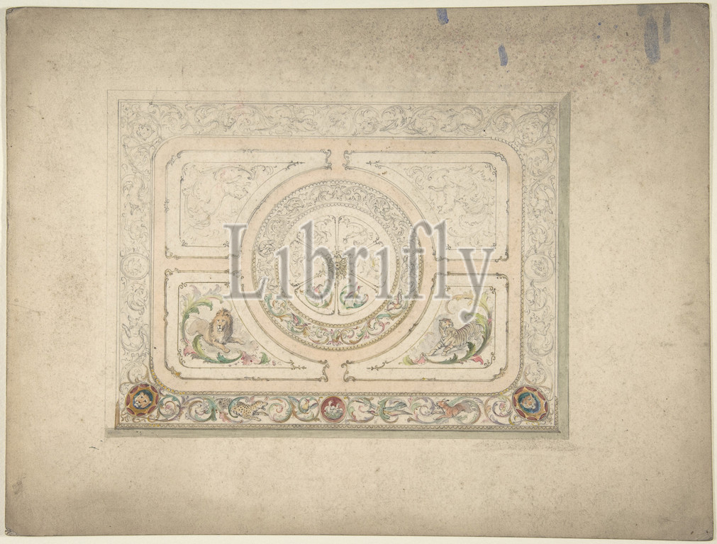 Design, Ceiling, Lion, Lioness, 19th century, Ink, watercolor, Anonymous, British