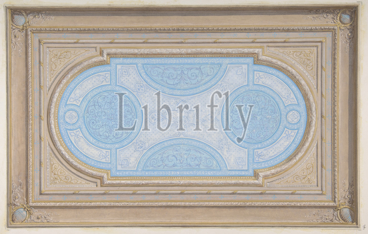 Design, ceiling painted, filagree designs, second half 19th century, Watercolor, gouache, gold paint, wove paper, inlaid, Overall, 18 15/16 x 13 7/16, 48.1 34.1 cm, Drawings, Jules-Edmond-Charles Lachaise, French, died, 1897, Eugène-Pierre Gourdet, born Paris, 1820