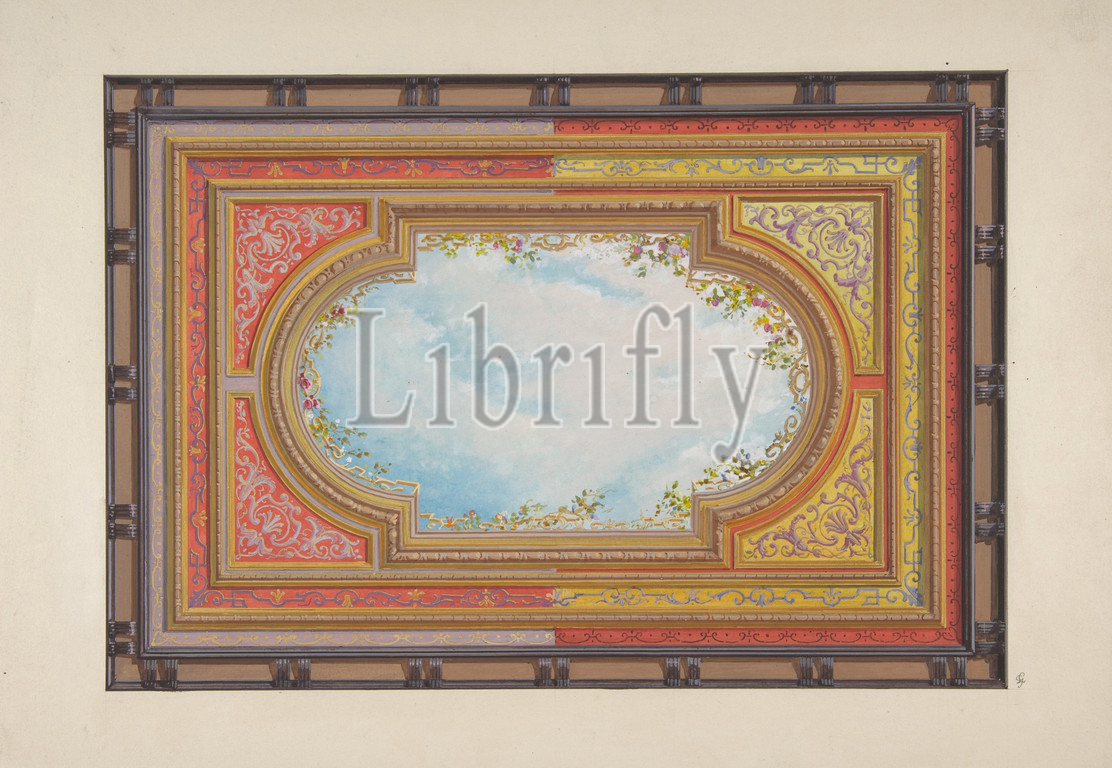 Design, ceiling painted, trompe l'oeil clouds, 1830–97, watercolor, gouache, gold paint, wove paper, sheet, 14 3/4 x 10 3/8, 37.5 26.3 cm, Drawings, Jules-Edmond-Charles Lachaise, French, died, 1897, Eugène-Pierre Gourdet, born Paris, 1820