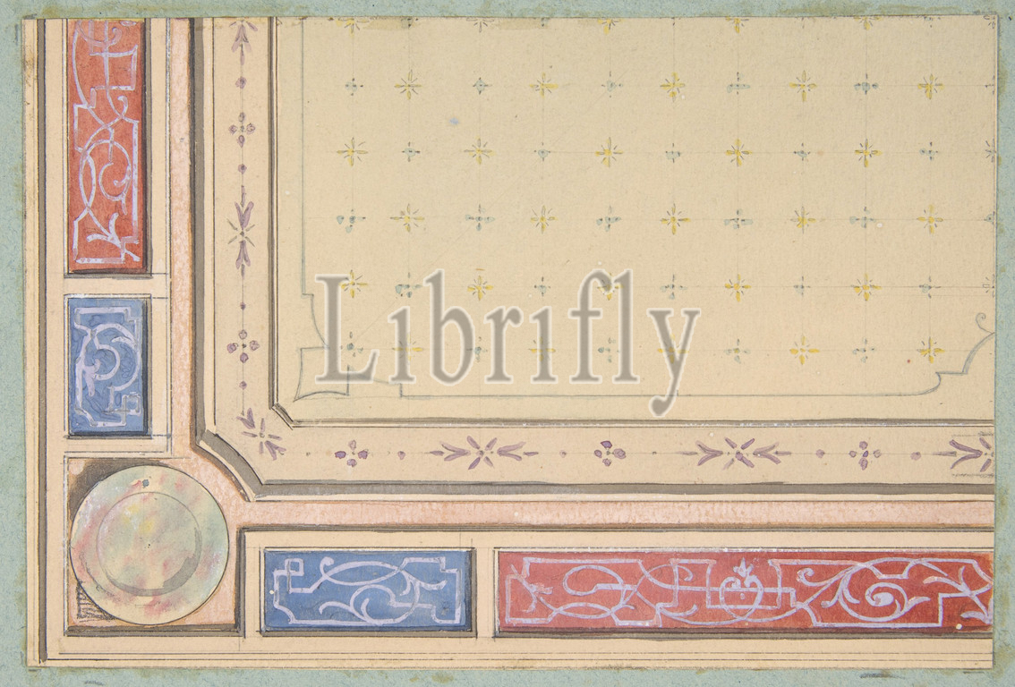 Design for a ceiling, second half 19th century, Graphite, pen and black ink, gouache, and watercolor, Overall: 8 1/4 x 10 11/16 in. (21 x 27.2 cm), Drawings, Jules-Edmond-Charles Lachaise (French, died 1897), Eugène-Pierre Gourdet (French, born Paris, 1820)