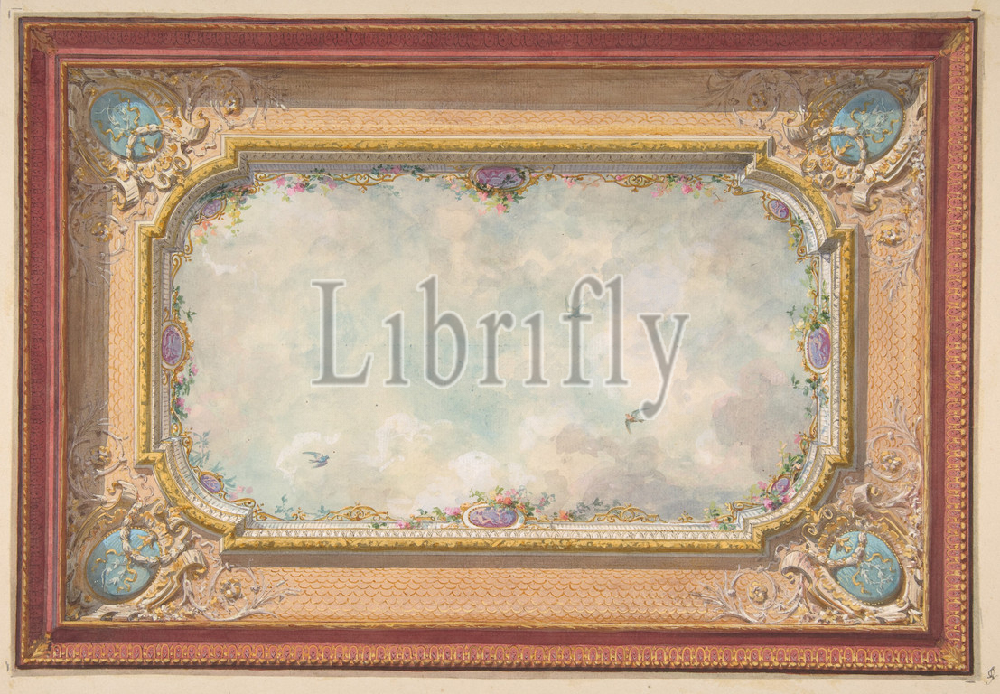 Design for a ceiling with trompe l'oeil sky, second half 19th century, Graphite, gouache, and watercolor, Overall: 13 1/4 x 19 7/16 in. (33.6 x 49.3 cm), Drawings, Jules-Edmond-Charles Lachaise (French, died 1897), Eugène-Pierre Gourdet (French, born Paris, 1820)