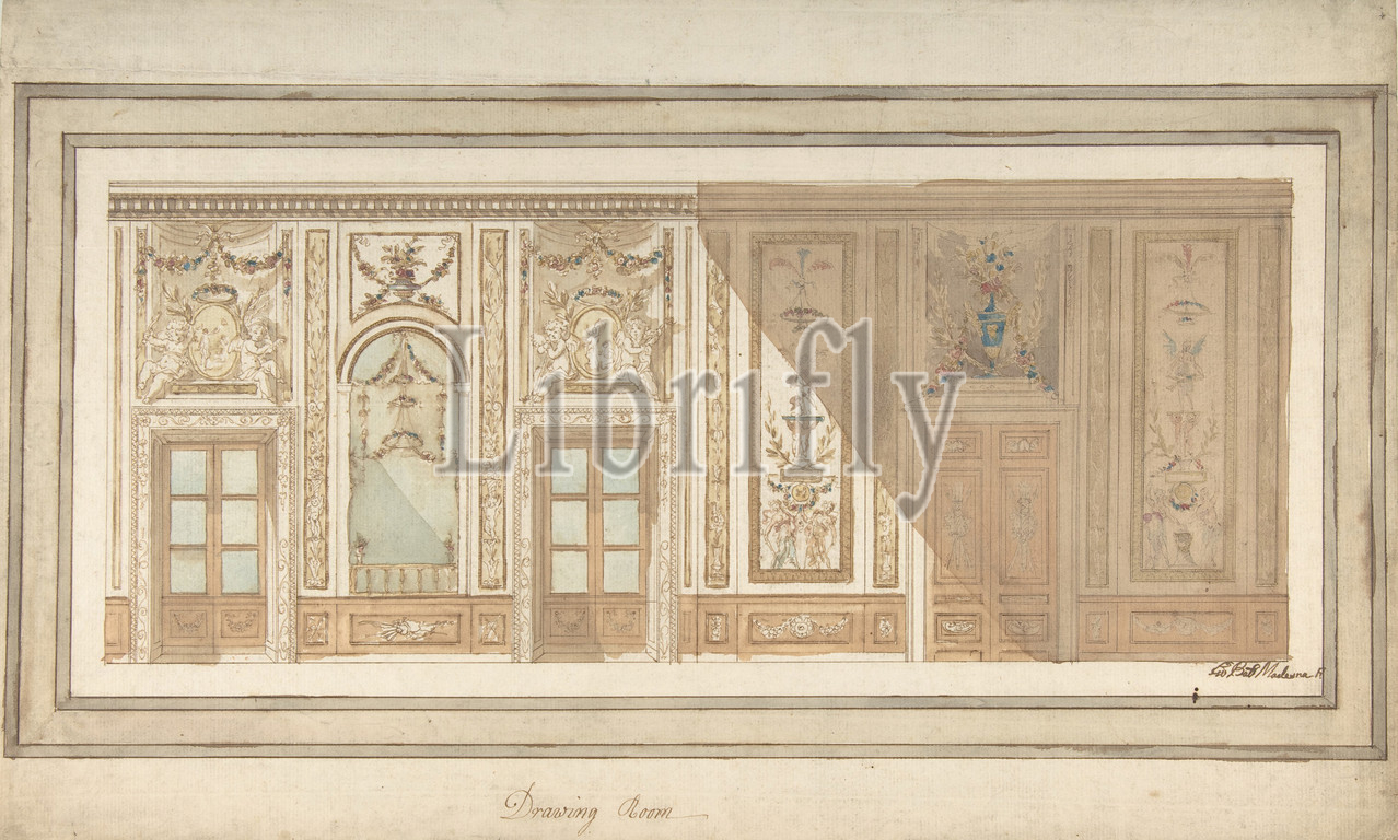 Design for Decoration of a Drawing Room, 1758–1803, Pen and brown ink, brush and brown and colored wash, 11-7/16 x 19 in. (29.1 x 48.2 cm), Giovanni Battista Maderna (Italian, Verona 1758–1803 Stockholm)