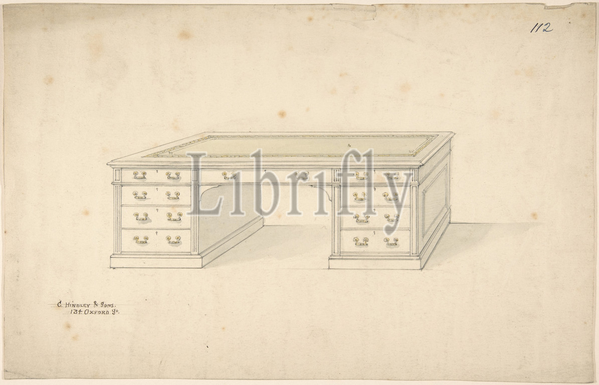 Design, Desk, 1841–84, Graphite, watercolor, sheet, 8 11/16 x 13 9/16, 22.1 34.4 cm, Charles Hindley and Sons, British, London, 1841–1917