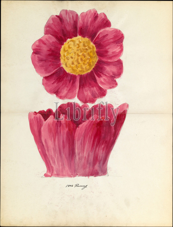 Design drawing of peony blossom of floral capital from loggia, Laurelton Hall, ca. 1900–1915, American, Watercolor, graphite, and ink on paper, 18 3/8 x 14 in. (46.7 x 35.6 cm), Drawings, Lenox, Incorporated (established 1889)