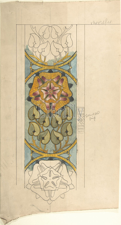 Design, Ecclesiastical Embroidery, Vertical Pattern, Tudor Rose, late 19th–early 20th century, Graphite, pen, ink, watercolor, Ernest Geldart, British, London, 1848–1929