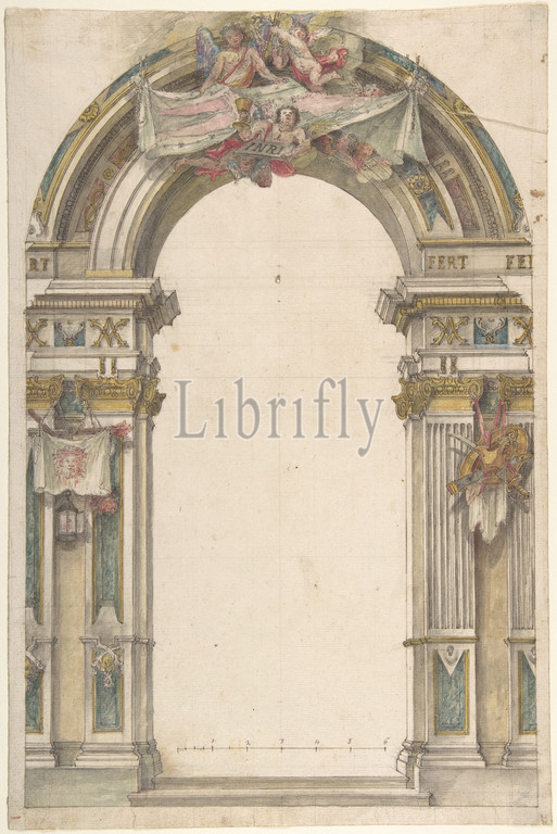 Design for the Entrance to a Chapel, 1700–1780, Pen and gray ink, brush and watercolor, over lead point. Scale at bottom in pen and gray ink, 13-9/16 x 9 in. (34.5 x 22.9 cm), Drawings, Anonymous, Italian, Piedmontese, 18th century