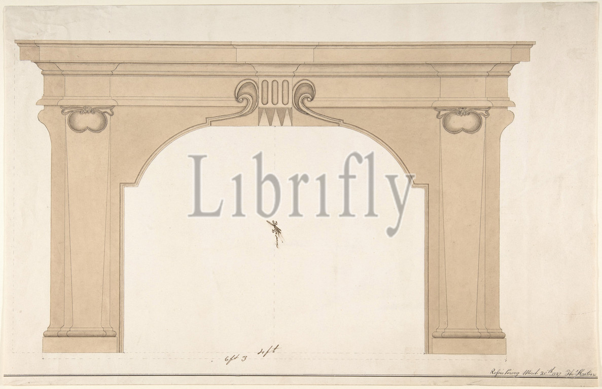 Design, fireplace, 1827, Watercolor, pen, black ink, sheet, 10 1/4 x 15 7/8, 26 40.3 cm, Thomas Heiton, British, active