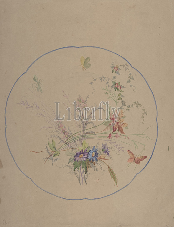 Design, Flower Sprays, Butterflies, ca, 1870, Watercolor, 8-3/8 x 8-3/8, Drawings, Anonymous, Italian, 19th century