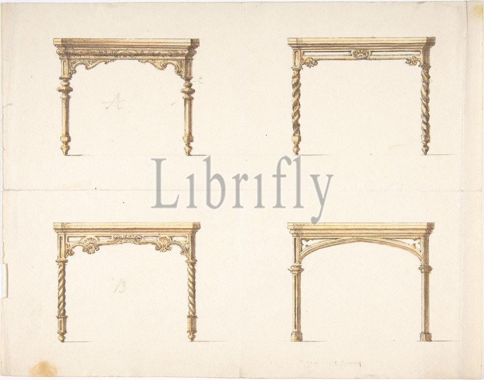 Design for Four Table Ends, early 19th century, Ink and watercolor, sheet: 7 11/16 x 9 13/16 in. (19.5 x 24.9 cm), Anonymous, British, 19th century