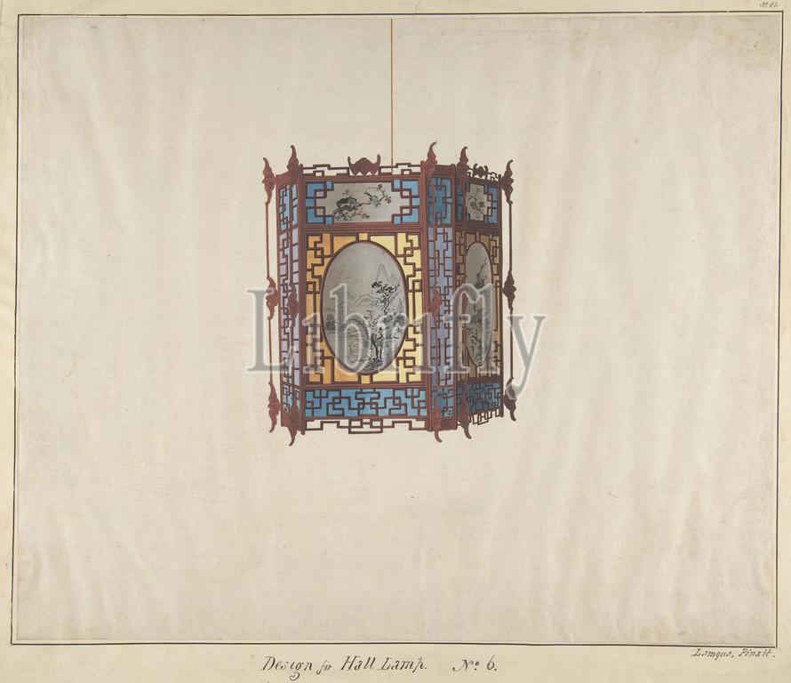 Design, Hall Lamp No.6, ca, 1845, Watercolor, sheet, 12 5/8 x 15 1/4, 32.1 38.7 cm, Lamqua, Chinese, 19th century