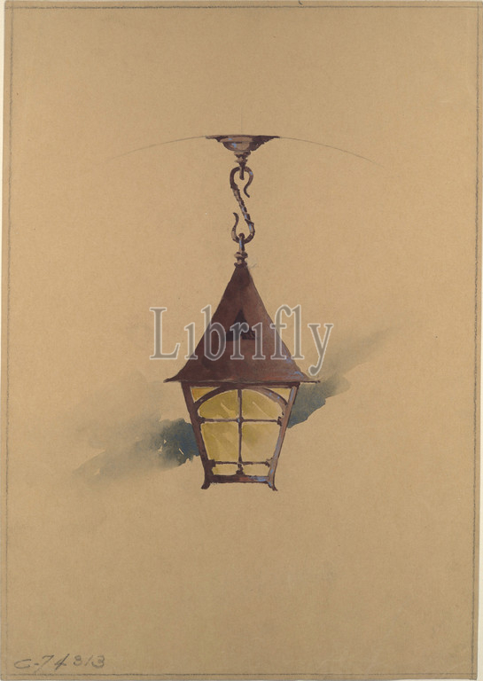 Design, hanging light fixture, late 19th–early 20th century, New York, United States, American, Watercolor, colored pencil, graphite, tan wove paper, vertical grain direction, Overall, 22 1/8 x 15 1/16, 56.3 38.3 cm, Drawings, possibly, Tiffany Glass Company, 1885–92, and Decorating, 1892–1902, Studios, 1902–32
