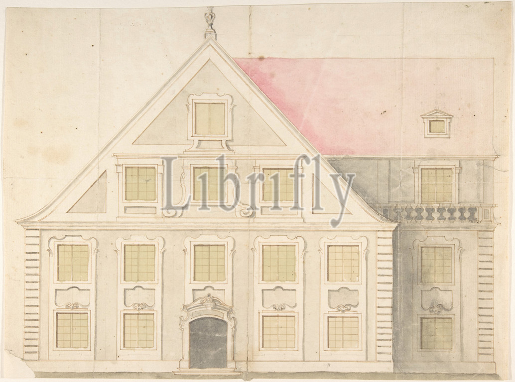 Design, House Façade, 18th century, Pen, brown ink, brush, gray wash, watercolor, cut-out lower edge, Drawings, Attributed to Anonymous, German