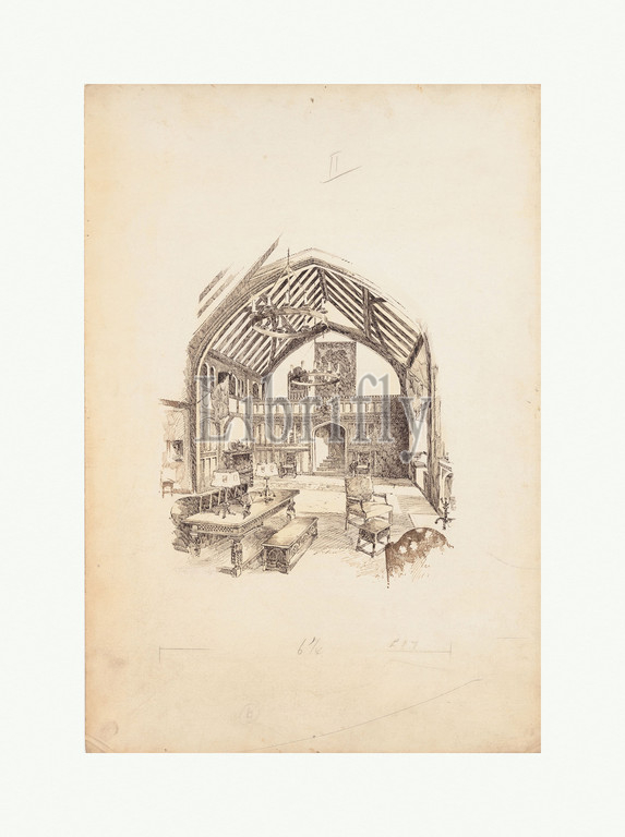 Design for an Interior, late 19th–early 20th century, Made in New York, United States, American, Watercolor, pen and brown ink on artist board, 21 7/8 x 14 13/16 in. (55.5 x 37.6 cm), Drawings, Possibly Tiffany Glass Company (1885–92), Possibly Tiffany Glass and Decorating Company (American, 1892–1902), Possibly Tiffany Studios (1902–32)