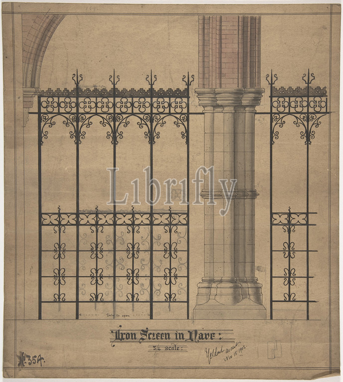 Design, Iron Screen, 1902, Watercolor, pen, black ink, graphite, sheet, 11 5/8 x 10 7/16, 29.5 26.5 cm, Ernest Geldart, British, London, 1848–1929