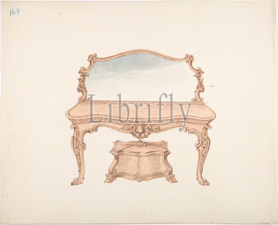 Design, Mirrored Dressing Table, Baroque Ornament, Casket, early 19th century, Ink, watercolor, sheet, 9 1/2 x 11 13/16, 24.2 30 cm, Anonymous, British, 19th