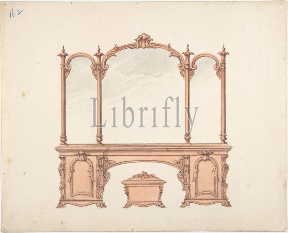 Design, Mirrored Sideboard, Rococo Ornament, Casket, early 19th century, Ink, watercolor, sheet, 9 1/2 x 11 13/16, 24.2 30 cm, Anonymous, British, 19th