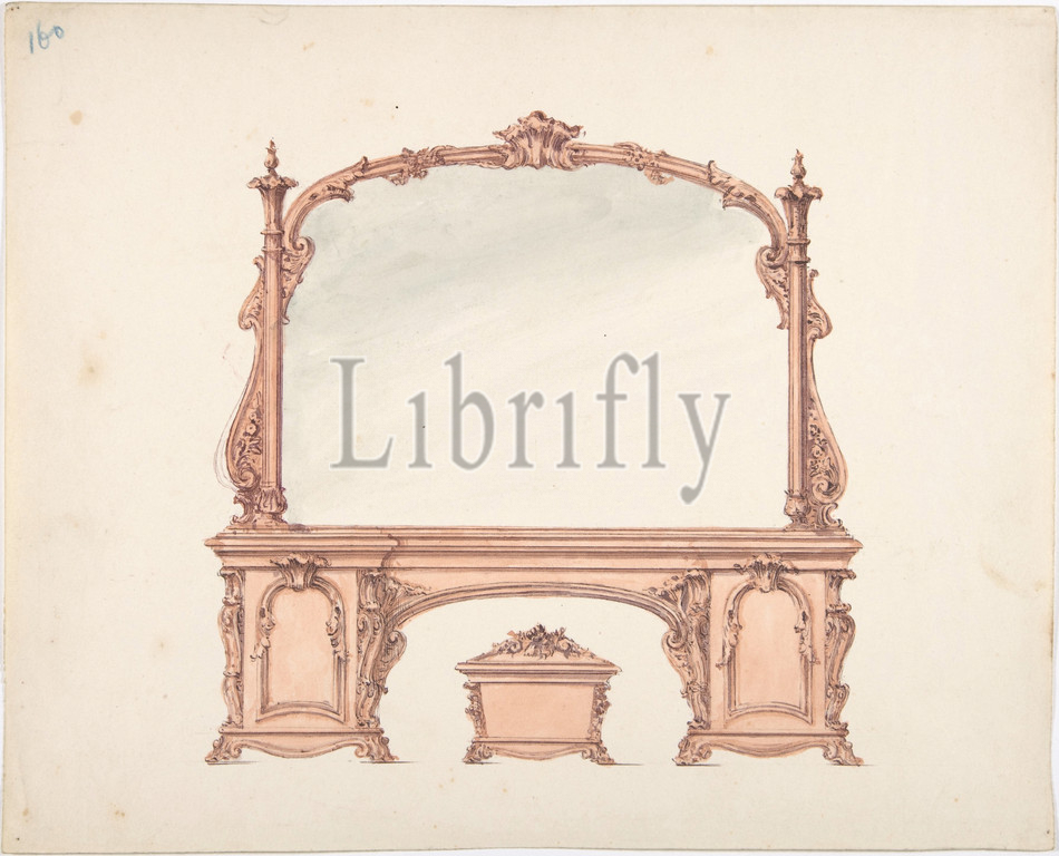 Design, Mirrored Sideboard, Rococo Ornament, Casket, early 19th century, Ink, watercolor, sheet, 9 7/16 x 11 3/4, 24 29.9 cm, Anonymous, British, 19th