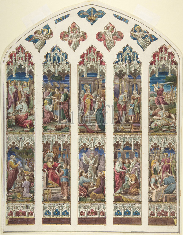 Design, Old Testament Window, ca, 1870, Black pen, ink, colored washes, watercolor, sheet, 16 7/16 x 12 3/4, 41.8 32.4 cm, Attributed to Dante Gabriel Rossetti, British, London, 1828–1882, Birchington-on-Sea