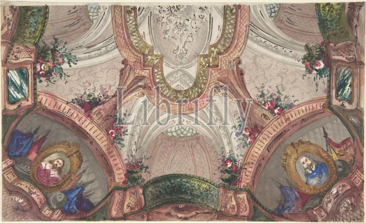 Design, Painted Ceiling, 1800–1900, Watercolor, 8-5/15 x 13-3/4, Drawings, Anonymous, Italian, 19th century
