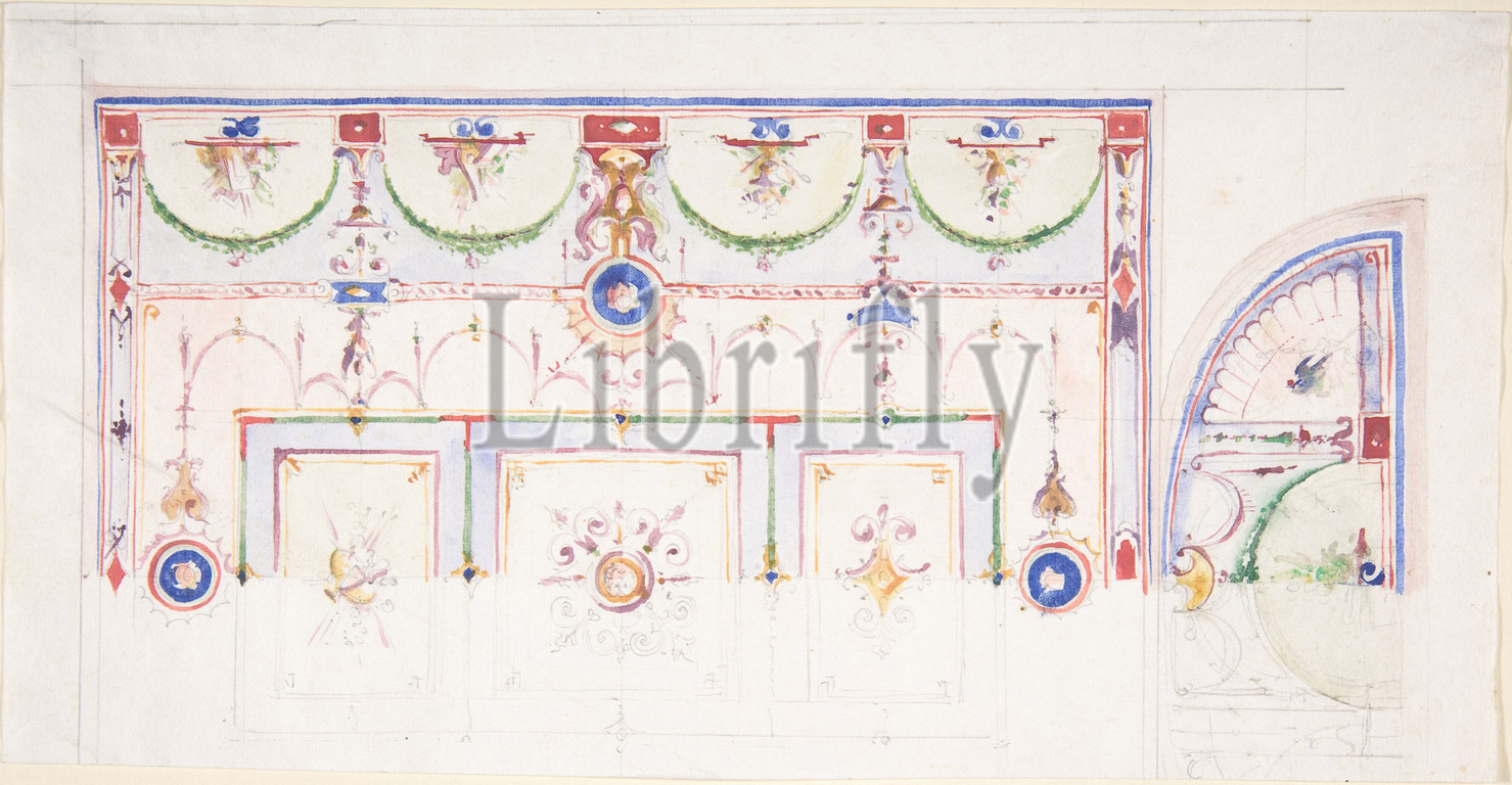 Design for a Painted Ceiling, 1825–75, Watercolor, 5-1/4 x 10-1/8 in, Drawings, Anonymous, Italian, 19th century