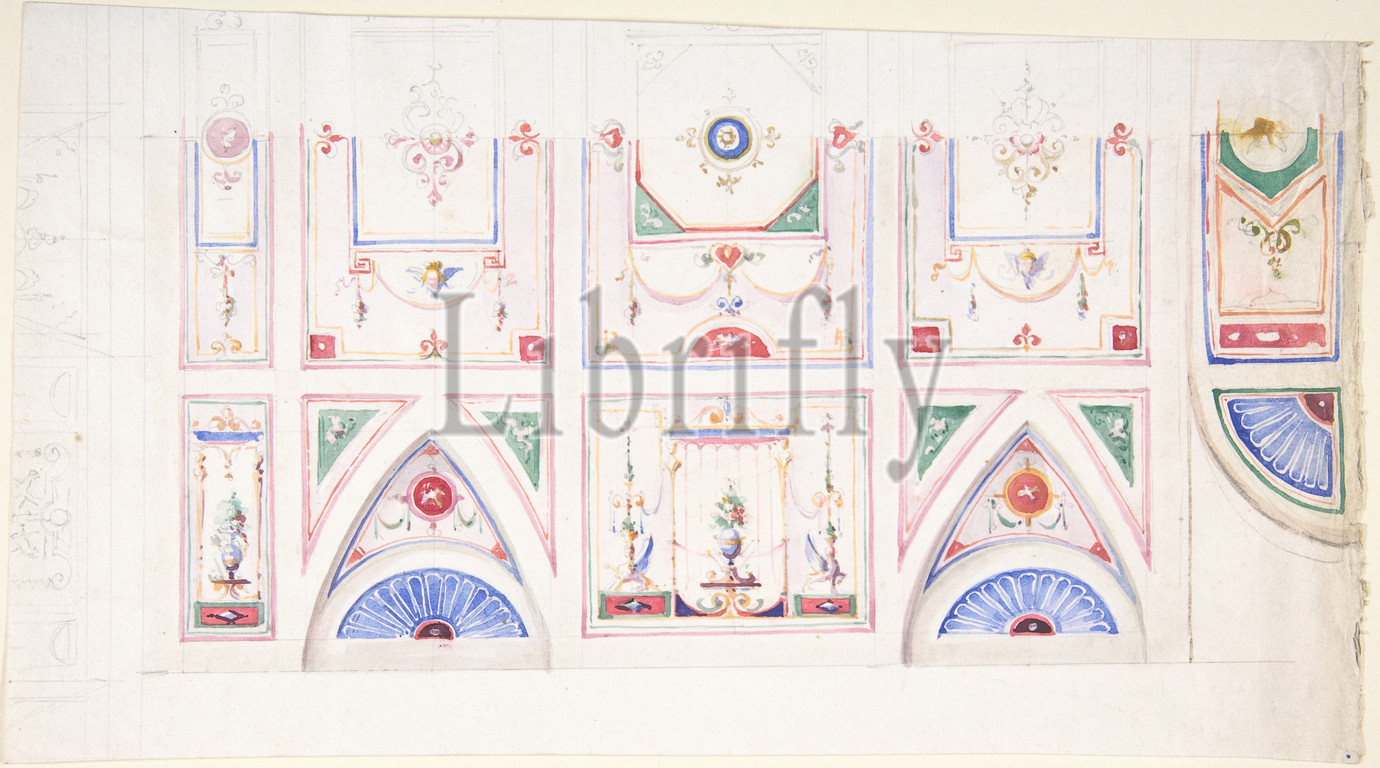 Design for a Painted Ceiling, 1825–75, Watercolor, 6-5/8 x 11-3/4 in, Drawings, Anonymous, Italian, 19th century