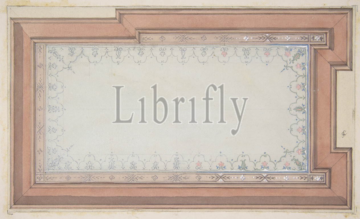 Design, painted decoration, ceiling, 1830–97, pen, ink, watercolor, heightened, white, wove paper, mounted, Overall, 10 3/8 x 14 3/4, 26.3 37.5 cm, Drawings, Jules-Edmond-Charles Lachaise, French, died, 1897, Eugène-Pierre Gourdet, born Paris, 1820
