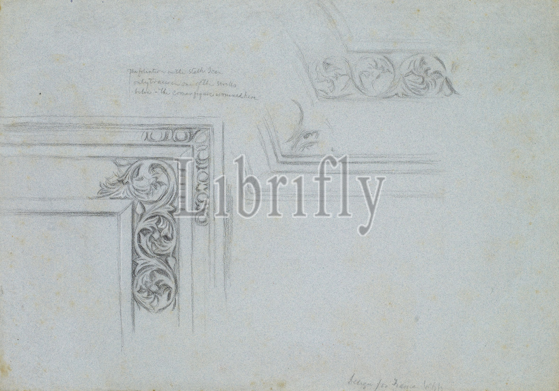 Design, picture frame, 1876 William Holman Hunt, Drawing, Ink, Pencil, Chalk, Sketch, Pre-Raphaelite, Frame, Design