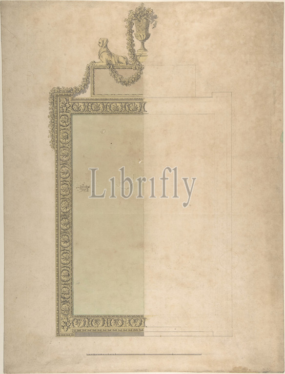 Design, Pier-glass, Adderbury House, Oxfordshire, Duke, Buccleuch, ca, 1768, Pen, ink, watercolor, sheet, 18 1/2 x 9 1/2, 47 24.1 cm, Sir William Chambers, British, born Sweden, Göteborg, 1723–1796, London