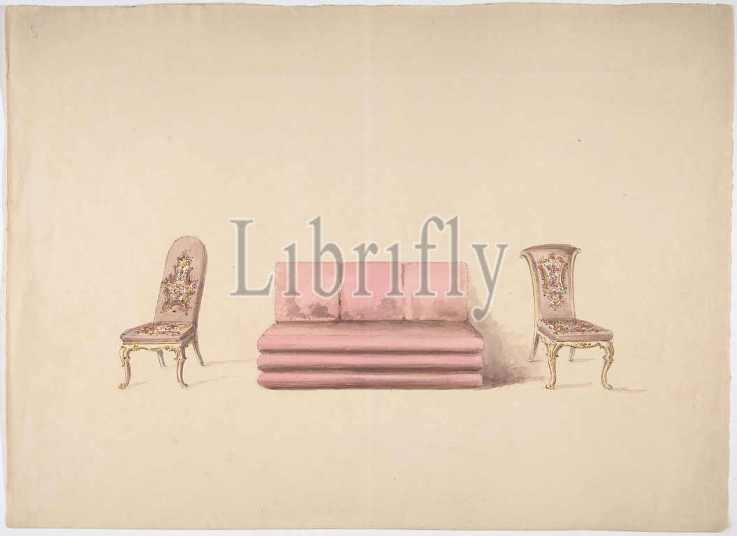 Design, Pink Sofa, Two Mauve Chairs, early 19th century, Ink, watercolor, wash, sheet, 10 13/16 x 14 15/16, 27.5 37.9 cm, Anonymous, British, 19th