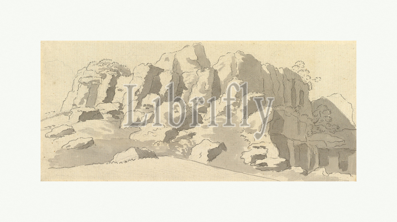 Design for Rock-work at Virginia Water, Windsor Great Park, 1780s (?), Pen and gray ink and gray wash, over graphite on laid paper, sheet: 4 1/8 x 9 1/4 in. (10.5 x 23.5 cm), Drawings, Thomas Sandby (British, baptized Nottingham 1723–1798 Windsor), Thomas Sandby, together with his better-known brother Paul Sandby, had an important influence on the early development of British watercolor practice. He was appointed as the Royal Academy's first professor of architecture and also worked at Windsor as a deputy ranger and architect of the king's works