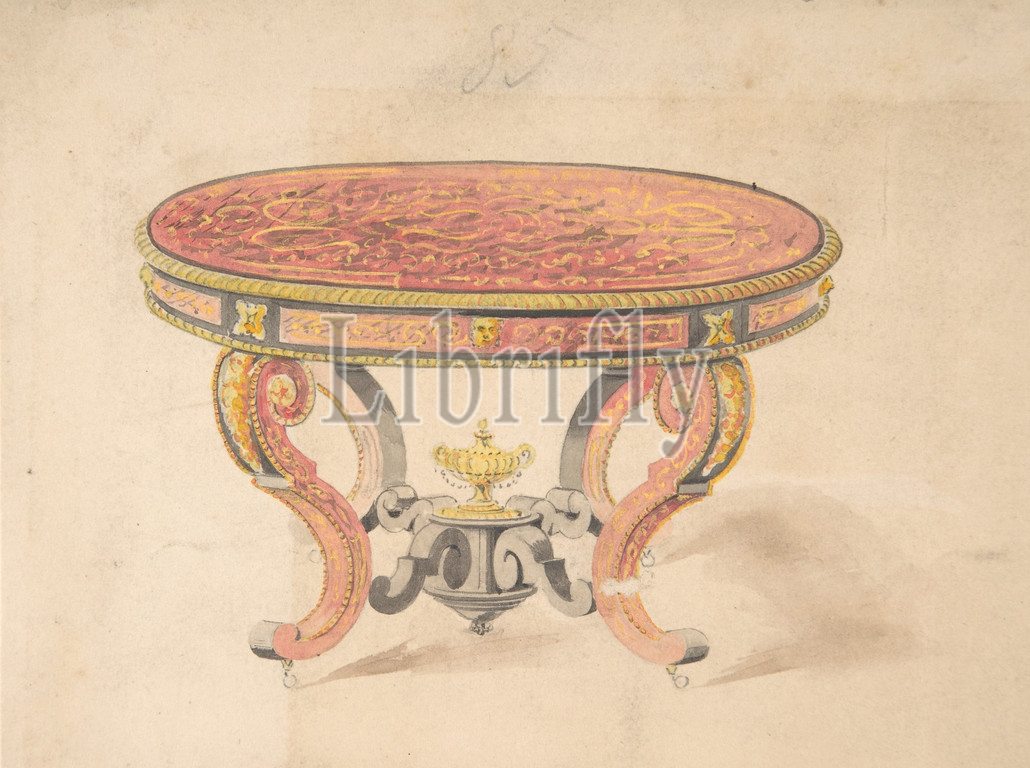 Design, Round Renaissance Style Table, 19th century, Ink, watercolor, sheet, 4 11/16 x 6 3/16, 11.9 15.7 cm, Anonymous, British