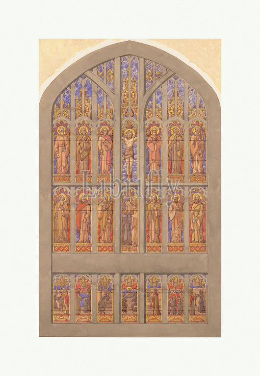 Design, seven lancet window, late 19th–early 20th century, New York, United States, American, Watercolor, pen, brown ink, graphite, artist board, 24 7/16 x 15 1/2, 62 39.4 cm, Drawings, possibly, Tiffany Studios, 1902–32