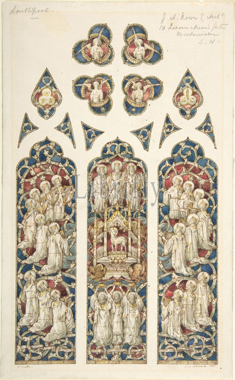 Design, Stained Glass Window, 1885, Watercolor, pen, brown ink, sheet, 11 11/16 x 7 1/4, 29.7 18.4 cm, Horatio Walter Lonsdale, British, 1844–1919