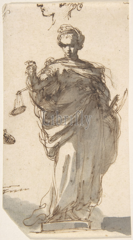 Design, Statue, Justice, Sketches, Left, n.d, Pen, brown ink, brush, gray wash, traces, black chalk, graphite, sheet, 5 1/4 x 2 7/8, 13.4 7.3 cm, Drawings, Designed by Giuseppe Bernardino Bison, Italian, Palmanova, 1762–1844, Milan