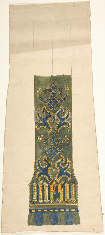 Design, Stole, late 19th–early 20th century, Watercolor, pen, black ink, graphite, sheet, 13 13/16 x 6 1/4, 35.1 15.9 cm, Ernest Geldart, British, London, 1848–1929