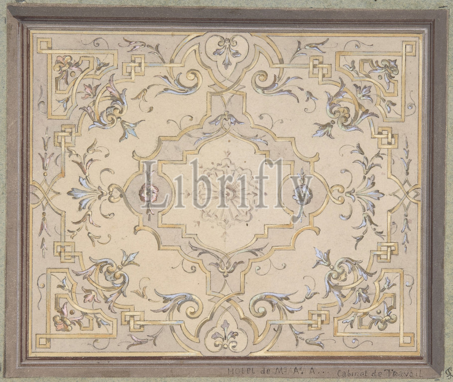Design for a Study Ceiling, second half 19th century, Graphite, watercolor, and gouache, 6 1/8 x 7 1/4 in. (15.6 x 18.4 cm), Drawings, Jules-Edmond-Charles Lachaise (French, died 1897), Eugène-Pierre Gourdet (French, born Paris, 1820)
